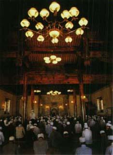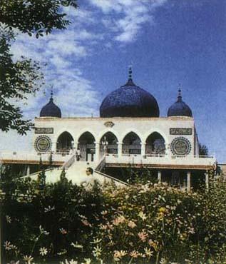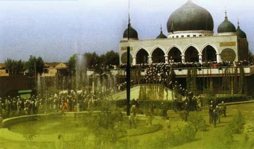 释义 | 银川南关清真大寺 位于银川市南关南环东路。明末清初始建于银川南门外,1915年迁至城区,1953年经过扩建,成为一座拥有大殿63间、面积1200多平方米,南北配房41间,占地为20多亩的建筑群。原寺为中国传统古典建筑风格,殿堂门窗皆为红松木,雕刻工艺精细,“文革”中遭拆毁。1981年重建,为阿拉伯式建筑风格。 现南关清真大寺占地3亩多,建筑面积2074平方米。主体建筑分上下两层,礼拜大殿位于上层,沿著弧形阶梯拾级而上,是二层平台,平台与大殿之间有一道汉白玉贴面的双心圆券柱廊。大殿呈正方形,边长各21米,窑殿用汉白玉做成圆心复叶型壁龛形式,上刻《古兰经》。大殿中部有4根绿色瓷砖贴面的方柱。大殿顶部为一大穹顶,直径为9.5米,四角各为一小穹顶。大小穹顶通体全绿,顶部均有宝瓶装饰,其中大穹顶上的新月距地面22米。大穹顶底部与殿内的方柱之间为圆柱形的鼓座,开设有24扇天窗,加上大殿内南北两侧各开6扇大窗,增加了殿内的光照亮度。此外,殿内还悬19盏大宫灯,墙壁置双管玉兰灯。礼拜大殿下层为小礼拜殿、阿訇住房、会客室等,以回廊相连接。以后,该寺在大殿前又添建了两座方柱形的“邦克楼”和两侧长廊,使整个清真寺的风格浑然一体,典雅华美,庄重宏伟。殿前还有一喷水池,每逢春夏绿萍浮水,莲荷映月,绿树成荫,百花争艳。 银川南关大寺建筑新颖,一度成为宁夏回族自治区的标志性建筑物,加之该寺位于城区,交通方便,因而成为宁夏境内吸引国内外旅游观光客人最多的人文景点之一。游客可乘1、2、3、11、19、20等路公共汽车或中巴车、出租车抵达商城或南门广场下车,稍行不远即可到达。 宁夏特产(五宝): 独特的自然地理条件,使宁夏拥有许多独具特色的农副畜产品。其中最主要是被誉为“红、黄、蓝、白、黑“宁夏“五宝”的枸杞、甘草、贺兰石、滩羊皮、发菜。 回族的文化艺术语言 回族通常使用汉语。民族聚居地区,除使用汉族方言外,还保留著相当数量的阿拉伯语和波斯语语汇。如:多斯蒂(兄弟)、色俩目(您好)、虎失奴底(满意)、都士曼(敌人)、伊不利斯(魔鬼)等等。这构成了回族人民经常使用的一种特殊的民族语言词汇。 武术运动 回族视武术为圣行。回族人民习练武术。目的用以自卫。强健身骨。明代中后期,显赫一时的马家枪、沙家枪、“回回十八肘”就广为流传。清代中后期又盛行“教门弹腿”。回族中历来有许多名噪武坛的武术家。 |