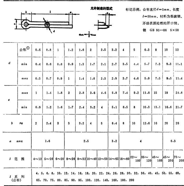 表4.5-31 圆柱销(摘自GB119—86) mm