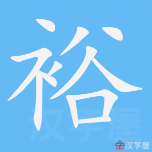 字源解说 谷,既是声旁也是形旁,表示粮食。裕,金文 = (衣)+ (谷,粮食),表示食物与食物。造字本义:衣食丰足。有的金文 调整成左右结构。篆文 承续金文字形。隶书 将篆文的“衣” 写成 。 附 文言版《説文解字》:裕,衣物饒也。从衣,谷聲。《易》曰:“有孚,裕無咎。” 附 白话版《说文解字》:裕,衣物富足有余。字形采用“衣”作边旁,采用“谷”作声旁。《易经》上说:“没有见信于人,暂且宽裕待时,就没有祸害。”