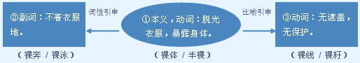 白话版《说文解字》:,赤身露体。字形采用“衣”作边旁,采用“”作声旁。裸,这是“”的异体字,采用“果”作声旁。