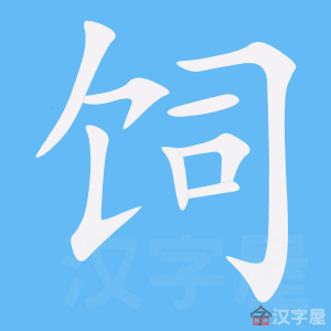 饲,甲骨文=(人)+(食,喂食),表示大人给抱在怀里的小孩喂食。造字本义:照顾他人进食。金文写成左右结构,像一个人在照顾他人进餐。篆文调整左右顺序。楷书另造“食”形、“司”声的形声字。