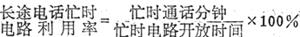 长途电话忙时通话分钟数占忙时电路开放时间的百分比。反映了长途电路在忙时的利用情况。计算公式为: