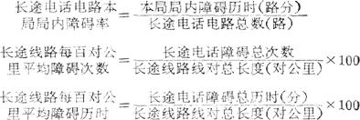 为了进一步分析,还可分别计算长途电话电路本局(发话局或收话局)局内障碍率和长途线路每百对公里平均障碍次