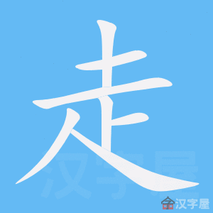 zǒu ❶动〈文〉跑。走马观花|奔走相告 →❷动人或鸟兽的脚交替离开地面向前移动,脚不同时离开地面。走路|行走|竞走 ⇒❸动离去;离开。他刚走|搬走|班车已经走了 ❹动 婉词,指人死。老人撒手走了 ⇒❺动(物体)移动;挪动(物体)。船走得很慢|走两步棋 ❻动 泄漏;透露出。说走了嘴|走漏消息 ⇒❼动偏离了原来的样子。走调儿|走板|走样 ⇒❽动经过(某种途径)。走水路到大连|走一道手续 ⇒❾动(亲友间)交往。走亲戚|走娘家 ○❿名姓。