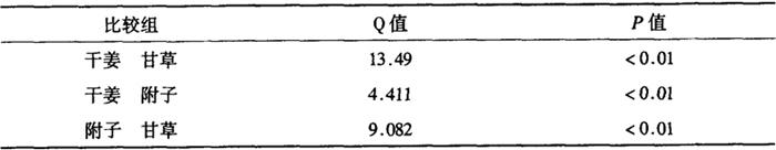 释义 | 附子 干姜 甘草 【中医理论】 附子1枚(10g),生用,去皮,破8片,干姜1两(9g),炙甘草2两(6g),名“四逆汤”,见于《伤寒论》。附子,大辛大热,入心脾肾经,温肾状阳,祛寒救逆;干姜、辛热,归肺脾与心经,可温中散寒,助阳通脉,干姜与附子,而者相须为用,助阳散寒之力尤大,故有“附子无姜不热”之说。配伍炙甘草为佐使,性温具补,补脾胃而调诸药,且可缓姜附燥烈辛散之性,使其破阴复阳,而无暴散之虞。诸药配伍共奏回阳救逆之功效,主治:少阳病。四肢厥逆,恶寒卷卧,呕吐不渴,腹痛下利,神衰欲寐,舌苔白滑,脉微;或太阳病误汗亡阳。用法:以水三升,煮取一升二合,去滓,分温再服。强人可大附子1枚、干姜3两。 【化学研究】 1.制备工艺 1.1 滴丸 选取基质为PEG6000(或4000),将干姜挥发油吸附混合后熔融,加入附片、甘草混合提取物,混匀保温于90±5℃。用内口径3.5mm,外口径5.0mm的滴管,以22~26粒/min的滴速滴入甲基硅油中,收集滴丸,吸除冷却剂即可[4]。 1.2 口服液 上3味药,附子、甘草加水煮2次,第1次2h,第2次1.5h,合并煎液,滤过。干姜通水蒸气蒸馏提取挥发油,另器保存,姜渣再加水煎煮1h,煎液与蒸馏分离挥发油的溶液合并,滤过,再与附子、甘草的煎液合并,浓缩至约400ml,放冷,加乙醇1200ml,搅匀,静置24h,滤过,减压浓缩成稠膏状,加水适量稀释,冷藏24h,滤过,加单糖浆300ml、防腐剂适量与上述挥发油,再加水至1000ml,搅匀,灌装,溶封,即得[5]。 1.3 新型汤剂 附子粉碎成细粉,以1%盐酸水提取,适当浓缩后,以95%乙醇加至含醇量70%左右,静置24h过滤,回收乙醇,浓缩液60℃真空干燥后密闭。每克相当生药2.6g。甘草以2%稀氨水提取,适当浓缩后以稀盐酸沉淀,离心过滤后,干燥、粉碎、密闭包装。每克相当生药3.0g。干姜适当粉碎后以水蒸馏法提到挥发油,残渣加水煎煮,煎煮液浓缩后醇沉,回收乙醇,真空干燥,粉碎后淋入挥发油密闭包装。每克相当生药2.0g(加适当赋型剂)。使用时按标示量取上药混合冲入60~80℃温开水[6]。 2.质量控制 2.1 鉴别 附子:取除去沉淀的四逆汤口服液,用氨水碱化至pH9,用30ml乙醚-氯仿(2∶1)混合液分二次萃取。合并萃取液,挥去溶剂。残渣用1ml无水乙醇溶解。取溶液5μl,点于硅胶G板或硅胶GF254板上,以石油醚-氯仿-95%乙醇(2∶4∶3)为展开剂,以改良Dragendorff试剂为显色剂,呈明显色斑[3]。 甘草:取四逆汤滴丸加水,酸化后的甘草酸沉淀用乙醇溶解即得样品。以正丁醇:醋酸:水(6∶1∶1)为展开剂,展开,用10%H2S04乙醇液为显色剂,100℃加热即显色[2]。 2.2 含量测定 2.2.1 总生物碱 滴定法测定:样品的制备:精密量取四逆汤剂10.0ml于分液漏斗中,加10%氨水2ml,用25ml乙醚萃取,萃取3次,合并乙醚提取液,55℃左右回收溶剂,低温蒸干,加中性乙醇5ml,微热溶解,待测定。样品的测定:在待测定的样品液中准确加入0.0217mol/L硫酸液10.00ml,振摇片刻,加入重新煮沸后冷却的蒸馏水15ml,加甲基红指示剂2滴,用0.0413mol/L氢氧化钠液回滴至溶液由淡红变为淡黄色,即为滴定终点。以乌头碱计算总生物碱的含量。每1m10.217mol/L的硫酸液相当于28mg的乌头碱[3]。 离子双萃取分光光度法:标准品曲线绘制:吸取乌头碱标准液0.01097mg/ml不同量,按一定方法操作,以选定波长测定,得回归直线方程:C=4.0383A+0.0926,r=0.9944。样品制备:取滴丸,加水,同乌头碱TLC制备方法。残渣加酸水溶解,定容10ml,即得样品。样品测定:精密吸取样品2.0ml,置分液漏斗中,加蒸馏水1.0ml,溴麝香草酚蓝指示液2.0ml,pH6.0的邻苯二甲酸氢钾缓冲液5.0ml,氯仿10ml,振摇3min,静置1h,分出氯仿液,过滤。同法以蒸馏水3.0ml作空白试验,以氯仿作空白,样品UV扫描图与乌头碱标准液一致,由选定的条件测定,将测定值查标准曲线或代入上述回归直线方程计算样品中乌头生物碱的含量[2]。 2.2.2 乌头碱 TLC-比色法:样品制备:取滴丸加水酸化后过滤,滤液碱化,以乙醚氯仿萃取,萃取液于低温挥干,取残渣用乙醇溶解即得样品。样品测定:取样品,以乙醚:氯仿:甲醇(1∶2∶1)为展开剂,展开,用碘蒸汽为显色剂。先以乌头碱标准液测定TLC的检出灵敏度,再由样品呈现明显斑点的最少点样量计算滴丸中乌头碱的限量[2]。 HPLC法(高效液相色谱法):标准曲线绘制:精密称取乌头碱对照品5.7mg于量瓶中,氯仿溶解并稀释至刻度,进样1.0,2.0,3.0,4.0,5.0μl。再精密吸取上述溶液1.0ml置瓶中,用氯仿稀释至刻度,摇匀,进样2.0,4.0,6.0,8.0μl。以所得的乌头碱色谱峰的面积值与进样量(μg)作图,二者呈良好的线性关系。其线性回归方程为:Y=18033.64X+223.34,r=0.995.乌头碱水解产物对照溶液的制备:精密称取乌头碱对照品约2mg,置2ml安瓿中,加水1ml,置水浴上蒸干,残余物加氯仿溶解并定量移至2ml量瓶中,加氯仿至刻度,作为加样回收率试验的对照品溶液。样品的制备及测定:取四逆汤颗粒剂12g左右,精密称定。加蒸馏水30ml,加热溶解后加入乙醇130ml,混匀,过滤。滤液减压回收蒸干。加稀盐酸5ml于残渣中,超声处理10min,过滤于分液漏斗中,残渣再用稀盐酸洗涤4次,每次3ml,各超声处理5min,过滤于同一分液漏斗中,用浓氨水调节pH9~10。氯仿提取3次,依次为20,10,10ml,合并氯仿液,回收蒸干,残余物加入0.1%三乙胺—甲醇(2∶8)1.0ml溶解,过滤。滤液作为供试品溶液。以乌头碱为标准来测定供试品中乌头碱水解产物的含量。乌头碱对照品进样6μl,样品进样10μl,乌头碱水解产物对照品进样2μl。取供试品溶液10μl,连续三次注入液相色谱仪,结果测定面积均值为132