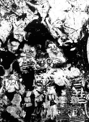 释义 | 降魔变 【作品赏析】: “降魔”是佛的“四相”之一,是指释迦牟尼一生所经历过的诞生、降魔、成道、涅槃等四个主要事件。 经文里说:在释迦牟尼即将成道之前,天魔波旬不甘失败,率领三个女儿及魔军前来挑战。他先让自己的女儿以女色相诱,继而指挥众魔军向释迦牟尼发起攻击,企图破坏释迦牟尼的修行。 因画幅较大,此图仅截取了全图的左边部分,即众魔军向释迦牟尼攻击的场面。图中右方魔王波旬,身著盔甲,手握剑柄,正虎视眈眈地仰首怒视著释迦。波旬身后是他的儿子,正在从旁劝阻。下部正中是随父前来的三个魔女,她们戴金冠、披大巾、身穿半袖外套背子,腰束长裙,通体为华贵的龟兹装,一个个搔首弄姿,正在向释迦献媚。 画面上部,布满了作人非兽、面目狰狞可怖的魔军。这些形象是作者依经文里“种种各异形,执戟持刀剑,猪鱼驴马头,驼牛兕虎形,狮子龙象首”的描述绘制的。 他们箭拔弩张、杀气腾腾、狂呼怒吼之声如闻于耳。但是这些貌似强大的恶魔在释迦的法力面前剑断矛折、一败涂地。画面右下侧跪地投降的两个魔军一副胆怯恭敬的模样,生动地突出了作品惩恶扬善的主题。 作品不但成功地运用了结构上对称、均衡等形式美的原则来突出其庄重性,而且在描绘人物时用形象上的大与小、静与动、丑与美的对比,以及色彩上冷与暖的对比来渲染不同人物的气质与精神风貌。 人物造型采用了来自西域的明暗晕染(即凹凸法)以表现立体感。画中释迦的形象高大突出,他身穿鲜亮的红色袈裟,体态庄严、神色泰然、举止从容。相形之下,众魔军面目凶恶丑陋、阵容密集叠压,加之设以青、绿色调,更显得阴森恐怖。 作品正是通过这种浪漫主义手法而产生了感人的艺术效果。。 北魏 壁画 敦煌莫高窟254窟左壁 纵145厘米 横110厘米 |