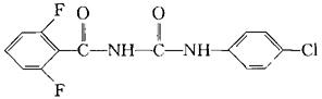 又名Dimilin,TH60-40,伏虫脲。 是一种低毒杀虫剂。化学名称:1-(对氯苯基)-3-(2,6-二氟苯甲酰基)脲。 化学结构式如下。纯品为白色结晶,无气味,熔点:230~232℃。 工业品含的有效成分95%,为浅灰色结晶粉末,密度1.56、熔点:210~230℃,蒸气压<1317.22×10-8Pa,水中溶解度为0.1mg/L(20℃),丙酮中为6.5g/L。易溶于极性溶剂如乙腈、二甲基砜以及乙羧乙酸、二氯甲烷、甲醇等。 大鼠口服LD50>4640mg/kg,兔经皮LD50>2000mg/kg对鱼类低毒,虹鳟96hLC50140mg/L,对蜜蜂、青蛙以及害虫的天敌无毒。对鳞翅目幼虫具高效。有效成分30g/hm2可有效地防治黏虫、松毛虫、菜青虫、稻纵卷叶螟、舞毒蛾、枣尺蠖等。
