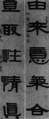 释义 | 隷书五言联 【简介】: 淸·伊秉绶书于嘉庆二十年(1815)。纸本。隷书。凡上下联正文十字,款十六字,共二十六字。178×33.3cm。首都博物馆藏。刊于《中国古代书画图目》(一)。 【赏析】: 观伊氏此隷书联,严格的中锋行笔,藏头护尾,法度森然,而且笔画粗细大致均等,圆润率直,分明是地道的篆籀笔意。结体追求左右平均匀称。然而,其改篆籀的纵势爲八分的横势,篆隷结合,古趣盎然,金石之气,跃然纸上。伊氏隷书,善用浓墨,墨色柔润,乌亮如漆,笔划光洁精到,无斑剥的碑痕而有金石之气,无传统帖学的柔弱秀媚而有圆润含蓄的帖意,可说是典型的碑帖结合的代表作品。伊氏又“能拓汉隷而大之,愈大愈壮”。笔划粗拙雄强,结体稳定踏实,横平竪直,严整工稳,显得正气凛然,撇捺左伸右挑,恣意纵横,外柔内刚,显得潇洒飘逸,随意自然。法国熊秉明在《中国书法的理论体系》一书中讚伊书“壮伟厚重,笔划往往越出格子,侵入边缘留白,发出一种威临观者、震慑观者的气魄。文字内容和书法形式锤打爲一体,是道德律的命令句,是榛喝,彷彿是摩西捧出来的戒律碣。这和过去唐代的醉狂派,宋代的抒情派,明代的宁丑派都是不同的”。确实如此,伊秉绶用笔简练随意,率直自然,结体开张奇肆,大气磅礴。特别是下联“直取性情眞”中的“直”与“眞”及“性”与“情”的相同结构的巧妙变化,颇具匠心又毫不娇柔造作,藏巧于拙,于工稳中求变化,令人回味无穷。总之,伊秉绶隷书追溯秦汉,归眞返璞,是在更高层次上再现古风,而这种古风的形成,恰恰宣告了流美飘浮的帖学之风的终结。 他的正直与较豁达的性格在他的书法中亦有一定的体现,平正直率,毫不做作。委婉含蓄,柔中见刚。他的书法更多地体现了随意出格与法度规範,古风与现代意识,碑与帖,博大与精巧,诸方面的对立统一。这也正是伊氏隷书的突出的特点。这又是明淸以来萌发的民主意识在书法艺术上的反映。在追秦摹汉中又敢于自我表现,也是同时的碑学大师共同追求的时代意识,这一切,在欣伊氏此联时都能感受到的。 |