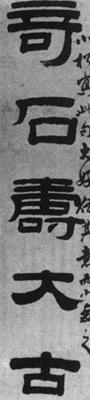 【简介】: 淸·桂馥书。纸本。隷书。凡上下联共十字,款二十一字,共三十一字。刊于日本《书道全集》(二十四)。