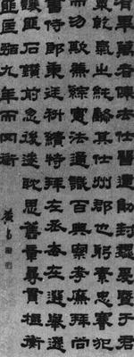 【简介】: 淸·黄易书。纸本。隷书。凡六行,共九十字。故宫博物院藏。刊于日本《中国书道全集》(八)。 【赏析】: 黄易的隷法素负盛名,与邓石如、伊秉绶、桂馥等有乾嘉八隷之称。相同的政治环境,使他们都身不由己的成爲乾嘉学派中的一员,黄易自是身体力行,于碑版金石的搜集用力颇大,除了以资考证金石,还常常作爲习书的範本,其书法艺术的成功根基于此。 黄易的这幅隷书,出自息心静气,因而给人的感觉也是小心著墨、笔意沉厚。 其书深得古法,行笔充实饱满,笔画平实浑厚,字字都貌丰骨劲,如千斤磐石,蹲踞其位,仪态敦厚。其结体虽很方整,但又于规矩法度中求得变化,也有大小、长短、阔窄、奇正、疏密、参差等变化。章法纵横有致,疏密得体,总之,其自然安详而敦厚的形体,和谐的笔触。毕,若良醇下肚,回味无穷。 正是他沉著的笔意,又使我们联想起“印从书出、书从印入”的法则。黄易还是西泠八家之一,篆刻以秀逸见长,浙派的切刀之法,以刀就石,一伏一起,缓缓而进,似乎这种奏刀之法养成了他作字行笔的方法,其字何来力沉,何来浑厚,当然是他借鑒了篆刻的某些长处,将其引伸融滙到书法的表现深层。其运用收笔时重顿的笔法,不正是下刀入石用力方式的映现吗?其书中可贵的金石气,便是从凝练苍朴金石铸凿的韵味而来。  前人称其“隷法精湛妍美”、“脱尽唐人窠臼”,道理便在于此。 |
