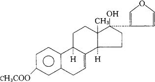 C24H26O4=378.47 CAS-10322-73-3 (17α)-19,24-二降胆固-1,3,5(10),7,20,22-己烯-3,17-二醇21,23-环氧3-醋酸酯。 (17α)-19,24-Dinorchola-1,3,5(10),7,20,22-hexaene-3,17-diol,21,23-epoxy,3-acetate. 21,23-环氧19,24-二去甲-17α-胆汁-1,3,5(10)7,20,20-己烯-3,17-二醇-3-醋酸酯。 21,23-Epoxy-19,24-dinor-17α-chola-1,3,5(10),7,20,22-hexaene-3,17-diol 3-acetate. 雌激素类药。 Estrofurate,AY-11,483. INN,USAN.  |