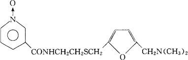 C16H21N3O3S=335.42 CAS-84071-15-8 N-[2-[[[5(二甲氨基)甲基]糠基]硫代]乙基]烟酰胺1-氧化物。 N-[2-[[[5-(Dimethylamino)methyl]furfuryl]thio]ethyl]nicotinamide 1-oxide. N-[2-[[[5-[(二甲氨基)甲基]-2-呋喃基]甲基]硫代]-3-吡啶]甲酰胺1-氧化物。 N-[2-[[[5-[(Dimethylamino)methyl]-2-furanyl]methyl]thio]-3-pyridine]carboxamide 1-oxide. 组胺H2-受体阻滞药,胃分泌抑制药。 Ramixotidine,CM 57862. INN,USAN.  |