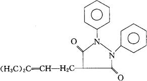 释义 | 非普拉宗[中] C20H20N2O2=320.39 CAS-30748-29-9 1,2-二苯基-4-(2-异戊烯基)吡唑烷3,5-二酮。 1,2-Diphenyl-4-(2-isoamylenyl)pyrazolidine-3,5-dione. 抗风湿药。用于活动性风湿病、类风湿性关节炎、牙周组织炎、血栓性静脉炎等。 戊烯保泰松,戊烯那宗,戊烯松。 Feprazone,Methrazone,Prenazone,DA 2370. 戊烯松片。 INN,BAN,DCF,DCIT,NFN,USAN,MI. |