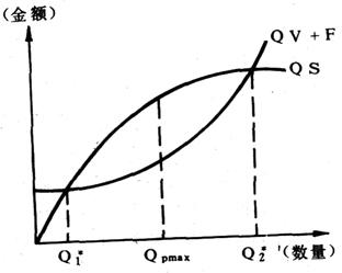 为求最大盈利时的产销数量QPmax,令, P=-(S2+V2)Q2+(S1-V1)Q-F P′=-2(S2+V2)Q+(S1-V1)=0 Pmax=-(S2+V2)Qpmax+(Si-Vj)QPmaxx-F |