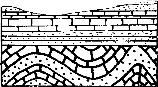 释义 | 岩层接触关系 岩层接触关系yanceng jiechu guanxi指一个剖面或一个地区新、老岩层的接触方式和特点。地壳下降引起沉积,上升引起剥蚀、沉积间断。所以岩层的接触关系可以反映沉积环境及地壳运动特点。当地壳处于相对稳定下降的情况,形成连续沉积的岩层,老岩层在下,新岩层在上,不缺失岩层,这种关系称整合接触。其特点是岩层互相平行,时代连续,岩性和古生物是递变的。整合接触说明在一定时间内沉积地区的地壳运动方向没有显著的改变,古地理环境也没有明显改变。由于地壳上升往往使沉积中断,地壳再下降又形成新的沉积层,与老岩层不连续,这种关系称不整合接触。两套岩层中间的不连续面,称不整合面。不整合面上下两套岩层的产状彼此平行,但是上下两套岩层的岩性和化石群显著不同,不整合面上往往保留着古侵蚀面的痕迹,这种不整合称平行不整合。若不整合面上下两套岩层成角度相交,上覆岩层覆盖于倾斜岩层侵蚀面之上,或者褶皱岩层侵蚀面之上,岩层时代不连续,岩性和古生物特征是突变的,不整合面上往住保存着古侵蚀面,这种不整合称为角度不整合。角度不整合的形成过程是:地壳下降,接受沉积;岩层褶皱隆起为山,遭受长期剥蚀;地壳再次下降,接受新的沉积。角度不整合说明在 一段时间内地壳有升降运动和褶皱运动,古地理环境发生过很大的变化。根据不整合面上覆地层中最老一层 (底层) 的时代与下伏地层中最新的一层 (顶层) 的时代,来确定不整合的时代,这上、下两层间隔的时期就是不整合形成的时代。 图1 平行不整合剖面图 图2 角度不整合剖面图 图3 角度不整合块状图 ☚ 岩相分析 褶皱 ☛ |