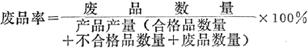 企业废品数量占全部产品产量(包括合格品、不合格品和废品)的比率。是考核产品质量的一项指标。其计算公式如下: