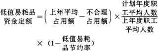 施工企业的低值易耗品包括生产用的工具器具、劳动保护用品和管理服务用的家具用具,它们同施工企业的职工人数有密切关系,定额核定公式为: