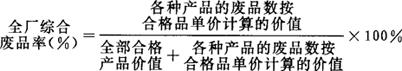指机械制造企业为了全面反映整个生产过程的工作质量,将各种产品在整个生产过程各个阶段上所发生的废品,采用现行或不变价格综合起来计算的总的废品率。其计算公式为: