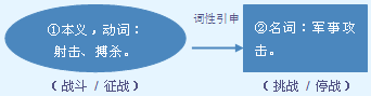 释义 | 战 1 (戰)★★★ 00296名![]() (戰) 战争;战斗: 停~|~无不胜|知己知彼,百~不殆。 和 hé 讲~|媾~|主战还是主~? ❶进行战争或战斗。作带宾、带补谓语。 我军勇~顽敌|我们民兵召之能来,来之能~,~之能胜|两人~了三个回合才见高低|他们为自由而~。 ❷泛指斗争。作带宾、带补谓语。 人民大众~天斗地,取得了伟大胜利|他们俩言来语去,~了两个多小时,谁也不服输。 ❸发抖。常用于固定词组中,或用作语素构成合成词。 胆~心惊|寒~。 【辨】 战和斗:都是动词,都有相争相斗的意思。词义范围不同:“战”有战争的意思,多指用武器相击;“斗”侧重于争斗,只要是两者相争都可说是“斗”,不一定要用武器,使用范围比“战”宽。“战”有发抖的意思,“斗”没有。 【近】 ❶❷斗 争 【反】 ❶和 【词语】 战备 战场 战车 战地 战犯 战俘 战歌 战功 战鼓 战果 战壕 战火 战祸 战机 战绩 战舰 战局 战况 战例 战乱 战马 战勤 战区 战神 战胜 战时 战士 战事 战书 战术 战天斗地 战线 战役 战友 战云 战争 字源解说 单,既是声旁也是形旁,是“弹”的本字,表示弹弓。战,金文 ![]() ![]() ![]() ![]() ![]() ![]() ![]() 合并字“战”的字形中,占,既是声旁也是形旁,是“佔”的省略,表示侵占、占领,因此“战”具有武力侵占、武力占有的意思。 附 文言版《説文解字》:戰,鬬也。从戈單聲。 附 白话版《说文解字》:战,战斗。字形采用“戈”作边旁,“单”作声旁。 引申线索 ![]() 【字族索引】 占 【同音字】 zhàn |