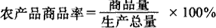 农产品商品量占生产总量的比例。它反映农业商品产品在全部生产总量中所占的比重及其变化,反映农业生产者能够提供商品产品的程度。其计算公式为: