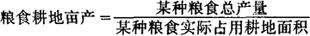 (3)按粮食占用耕地面积计算的单位面积产量,其计算公式为:
