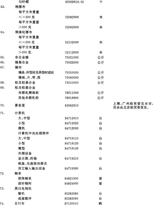 一、配额许可证事务局核发出口许可证商品(共22种)