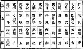 源于占星术。古天文家以太阳运行顺序十二等分星空,谓“十二次”,据此分天上星宿为十二星区,以十二星区与十二州国相配,可察天人之变。据《史记·天官书》、《淮南子·天文训》及郑玄《周礼保章氏》,分野匹配为: