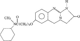 C21H28N4O3=384.48 CAS-101626-67-9 CAS-94192-59-3(lixazinone) N-环己基-N-甲基-4-[(1,2,3,5-四氢-2-氧代咪唑并[2,1-b]喹唑啉-7-基)氧]丁烷胺。 N-Cyclohexyl-N-methyl-4-[(1,2,3,5-tetrahydro-2-oxoimidazo-[2,1-b]quinazolin-7-yl)oxy]-butanamide. 强心药,抗凝血药。 Lixazinone,RS-82856. INN(Lixazinone),USAN.