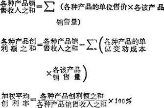 亦称“加权平均贡献毛益率”、“加权平均边际利润率”、“加权平均边际贡献率”。指各种产品的创利额之和占销售总收入的比重。计算公式如下: