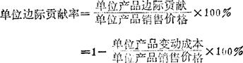 亦称“单位边际利润率”“单位边际贡献率”“单位创利率”。指单位产品的边际贡献占单位售价的比重。计算公式如下: