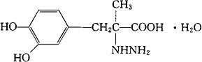 C10H14N2O4·H2O=244.25 CAS-38821-49-7 (-)-L-α-肼基-α-3,4-二羟-α-甲基氢肉桂酸,-水化合物。 (-)-L-α-Hydrazino-3,4-dihydroxy-α-methylhydrocinnamic acid monohydrate. α-肼基-3,4-二羟-α-甲基-苯基丙烷酸-水化合物(S). α-Hydrazino-3,4-dihydroxy-α-methyl-benzenepanoic acid monohydrate(S). 脱羧酶抑制药。 Canbidopa,Lodosyn. INN,BAN,USAN.