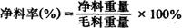 也称“净料率”、“拆卸率”、“出品率”。饮食品原材料经过拣、洗、宰杀、拆卸、涨发、初熟后的净重或半成品重量同原料重量的比率。其计算公式为: