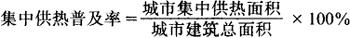 城市集中供热面积与城市建筑面积的比例。计算公式为: