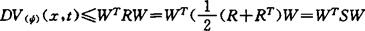 由假设ψi1,ψi2∈KR得出:V(x,t)是正定的,具有无限小上界,且有无限大性质,事实上,存在ψ1,ψ2∈KR,使得 ψ1(|x|)≤V(x,t)≤ψ2(|x|) 对所有x∈Rn及t∈J成立,因