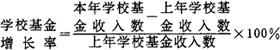 指本年学校基金收入数减上年学校基金收入数后,与上年学校基金收入数之比。其计算公式为:
