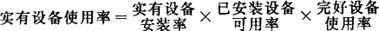 实有设备使用率也可用实有设备安装率、已安装设备可用率和完好设备使用率三指数之间的关系来表示,按下式来计算: