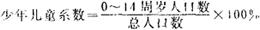又称少年儿童人口比重。是指少年儿童(或0~11周岁)人口占总人口的百分比。计算公式是:
