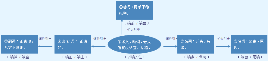释义 | 端 1 ★★★ 01027名![]() ❶东西的一头。 a.常和“一”“两”搭配,作主语。 走廊的一~摆着几盆鲜花,另一~安放着一面大镜子|篙的一~是尖的|竹竿的两~都裂开了。 b.用作语素构成合成词。 开~|发~|顶~|笔~|极~。 ❷项目,点。多和“一”搭配,作宾语。 土豪劣绅敲诈勒索、欺压凌辱百姓,劣迹何啻一~?|这一设计特点还多,这里仅举其大~。 端正。多用于否定句中。作谓语。 行为不~|这小子品行不~。 ❶平举着拿。能重叠。 a.作带宾、带补谓语。 ~饭|你帮我~~菜|~盘子|我给他~过茶,倒过水|~着一碗汤|把碗~平|~不动|把剩菜~走|~进去|~不过去|~得太少|~了半天盘子|~上来一碗汤|~了一盘点心出来|给谁~?|一碗一碗地~。 b.构成词组作定语。 ~来的菜很快就吃完了|他喜欢喝那碗刚~上来的汤。 ❷比喻不隐瞒地摆出。多用于口语。作带补谓语,补语多为趋向动词。 我们都把问题~出来|张师傅决心把车间里的矛盾~出来讨论。 【词语】 端架子 端量 端倪 端午 端绪 端阳 端庄 字源解说 耑,既是声旁也是形旁,表示老人拄杖而行。端,篆文 ![]() ![]() ![]() ![]() ![]() ![]() 附 文言版《説文解字》:耑,物初生之題也。上象生形,下象其根也。凡耑之屬皆从耑。 附 白话版《说文解字》:端,站直。字形采用“立”作边旁,采用“耑”作声旁。 引申线索 ![]() 【字族索引】 耑 【同音字】 duān |