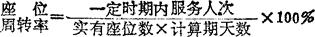 浴池、理发业一定时期内接待客人人次和实有座位数的比率。反映一定时期内顾客流动情况,是衡量座位设备利用效果的指标。计算公式是: