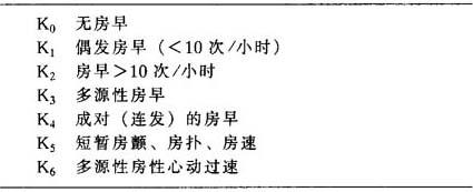 Kleiger(1974)将房性早搏分为六级,此称为房性早搏的分级。具体分级情况见下表: