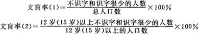 不识字和识字很少的人在人口中的比例,以百分数表示。计算公式是: