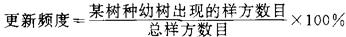 在更新调查的标准地中某树种幼树(目的树种)出现的样方数目与标准地内全部样方数目的百分率。其公式为: