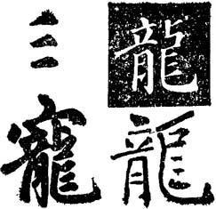 指“龙”等字中间三点的写法。清戈守智《汉溪书法通解·运笔卷第四》云:“横三点者,卷笔而下,笔笔有锋,‘龙’、‘渊’等字用之。”