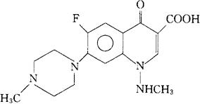 | 释义 | 氨氟沙星 C16H19FN4O3=334.35 CAS-86393-37-5 6-氟-1,4-二氢-1-(甲氨基)-7-(4-甲基-1-哌嗪基)-4-氧-3-喹啉羧酸。 6-Fluoro-1,4-dihydro-l-(methylamino)-7-(4-methyll-piperazinyl)-4-oxo-3-quinolinecarboxylic acid. 抗菌药。 Amifloxacin,Win 49375. INN,BAN,USAN.