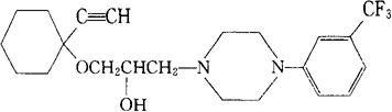 | 释义 | 特西哌嗪 C22H29F3N2O2=410.48 CAS-56693-15-3 (±)-α-[[(1-乙炔环己基)氧]甲基]-4-(α,α,α-三氟-间-甲苯基)-1-哌嗪乙醇。 (±)-α-[[(1-Ethynylcyclohexyl)oxy]methyl]-4-(α,α,α-trifluoro-m-tolyl)-1-piperazineethanol. 抗高血压药。 Terciprazine,CERM 3519. INN,USAN.