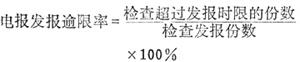 邮电(电信)局(包括所属分支机构)在检查本局发报时限的电报中,超过发报时限的份数占检查总份数的百分比。其计算公式为: