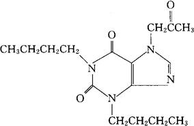 | 释义 | 登布茶碱 C16H24N4O3=320.39 CAS-57076-71-8 7-丙酮基-1,3-二丁基黄嘌呤。 7-Acetonyl-1,3-dibutylxanthine. 血管扩张药。 Denbufylline. INN,USAN.