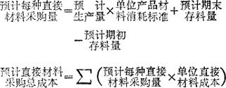 确定预算期内预计直接材料采购量和采购总成本的预算。主要根据生产预算编制。计算公式为: