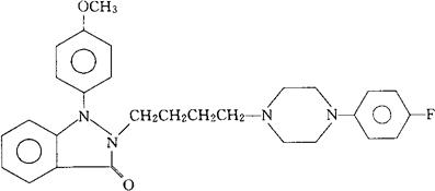 | 释义 | 艾地司特 C28H31FN4O2=474.58 CAS-108674-88-0 2-[4-[4-(对-氟苯基)-1-哌嗪基]丁基]-1-(对-甲氧苯基)-3-吲唑啉酮。 2-[4-[4-(p-Fluorophenyl)-l-piperazinyl]butyl]-1-(p-methoxyphenyl)-3-indazolinone. 抗过敏药。 Idenast. INN,USAN.
