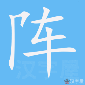 释义 | 阵 1 (陣)★★★ 01106名![]() (陣) 古代战术用语,指作战队伍的行列或组合方式;也指阵地。常用在固定词组中或用作语素构成合成词。 冲锋陷~|严~以待|天门~|一字长蛇~|迷魂~|败~|八~图|上~|叫~|怯~。 表示事情或动作经过的段落。有时可以儿化。多用来修饰风雨、声响、感觉等。常构成词组作定语。 下了几~雨|一~风刮过去|一~掌声|一~(儿)晕眩。 【词语】 阵地 阵脚 阵势 阵痛 阵亡 阵线 阵营 阵雨 【字族索引】 车 【同音字】 zhèn |